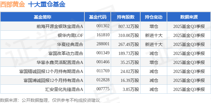 持有西部黄金最多的基金为前海开源金银珠宝混合A,目前规模为6.83亿元,最新净值2.426(10月29日),较上一交易日上涨3.63%,近一年上涨53.16%。该基金现任基金经理为吴国清。