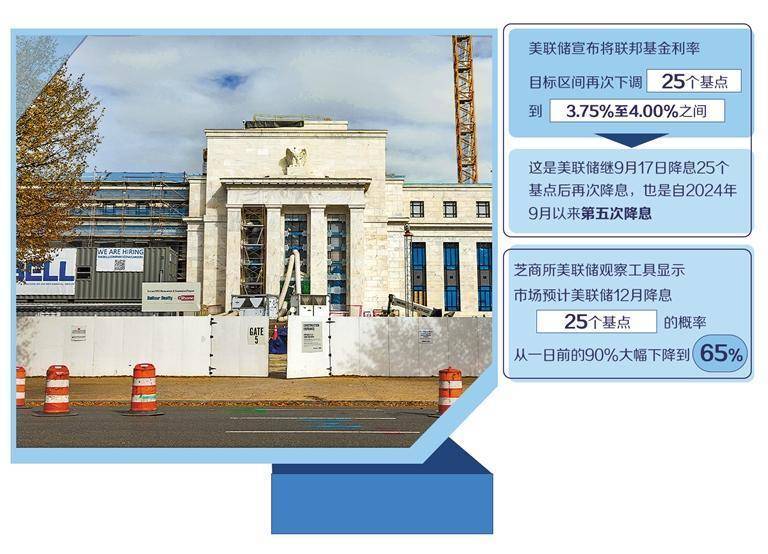 北京时间10月30日凌晨,美联储在结束为期两天的货币政策会议后宣布,将联邦基金利率目标区间再次下调25个基点到3.75%至4.00%之间。这是美联储继9月17日降息25个基点后再次降息,也是自2024年9月以来第五次降息,符合市场预期。