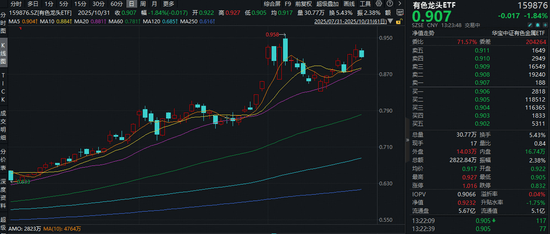 今日(10月31日)揽尽有色金属行业龙头的有色龙头ETF(159876)随市回调,场内价格盘中一度跌超2%,现跌1.84%,但从日k线上看,该ETF近日或已走出“上行台阶”,并且站在所有均线上方。