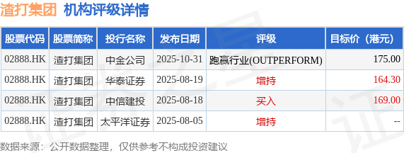 截至2025年10月31日收盘,渣打集团(02888.HK)报收于157.8港元,下跌1.07%,成交量64.46万股,成交额1.03亿港元。投行对该股的评级以增持为主,近90天内共有2家投行给出增持评级,近90天的目标均价为169.43港元。中金公司最新一份研报给予渣打集团跑赢行业(OUTPERFORM)评级,目标价175港元。