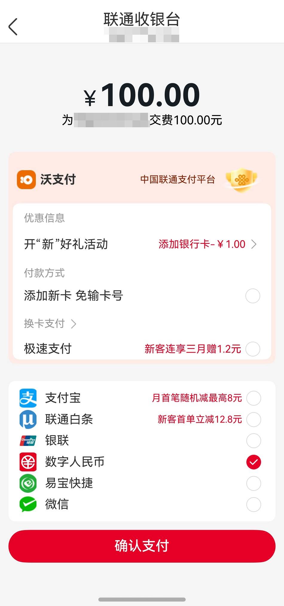 在积极打造元服务的同时,数字人民币还融入鸿蒙5的Payment Kit(鸿蒙支付服务),为用户带来更安全、更便捷的线上数字消费新选择——数字人民币收银台。例如在使用中国联通进行话费充值时,在付款界面可选择“数字人民币”进行支付,真正实现“拿到手机就能用”,将数字人民币服务延伸至每一个普通用户和每一个消费场景。