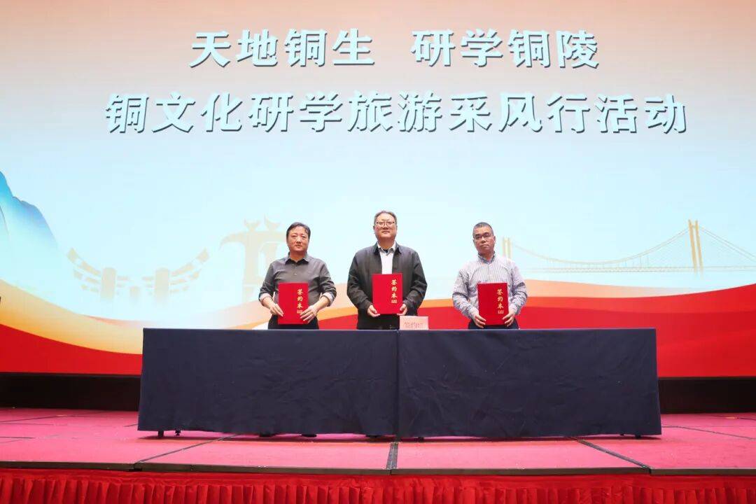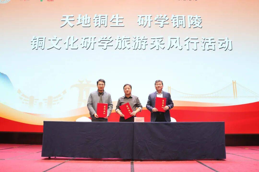 此次研学旅游采风行由安徽出版集团、市文化和旅游局、枞阳县政府共同举办,为2025年铜陵青铜文化节六大子项目之一。启动仪式上,我市集中发布了“一市一品”铜文化特色研学旅游产品、“天地铜生 研学铜陵”精品研学课程、“天地铜生”铜文化主题研学线路及“枞川三味”枞阳特色研学线路。枞阳县教体局、桐城市教育局、义安区教体局共同签署研学旅游互派生源计划协议;枞阳县文化和旅游局、教体局与安徽出版集团“皖美研学”平台达成合作签约。