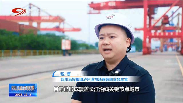 四川港投集团泸州港市场营销部业务主管 税博:泸州港综合吞吐(箱)量将从(“十三五”末)17.21万标箱增至(2025年底)26.5万标箱。目前已形成覆盖长江沿线关键节点城市、辐射川滇黔渝地区的9条国内精品航线。2024年又开通西部陆海新通道江铁海联运班列、中越(中老)国际班列,让四川货物更加便捷地走进欧亚、东南亚市场。