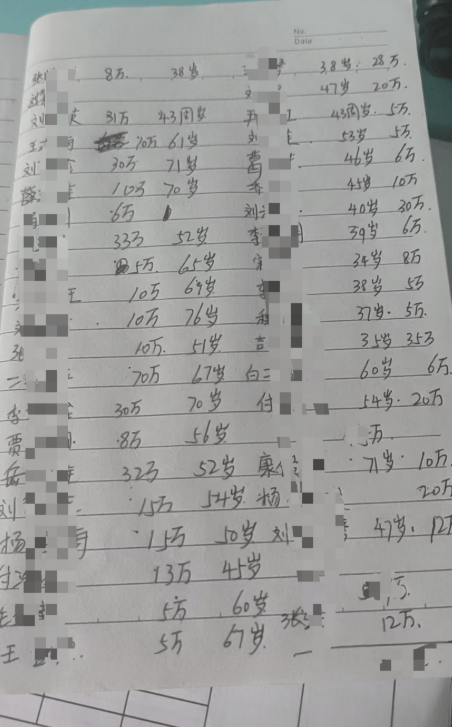 ▲部分储户受骗金额统计,大多数受骗者为中老年人。受访者供图