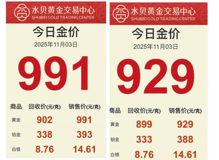 3日上午10点半,杭州白马珠宝市场一楼58号商户像往常一样更新了今天的金价:足金999和9999分别是985元/克和995元/克(工费另计)。