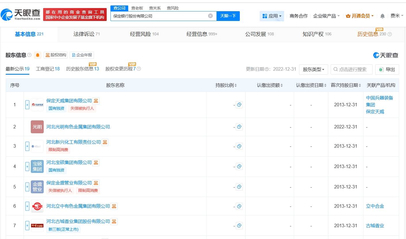 保定银行股份有限公司成立于2002年1月,注册资本59.8亿人民币,经营范围包括吸收公众存款、办理结算业务、办理票据承兑与贴现等。股东信息显示,该公司由保定天威集团有限公司、河北新兴化工有限责任公司、河北宝硕集团有限公司等共同持股。