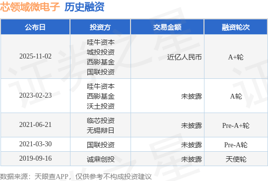 证券之星消息,根据天眼查APP于11月2日公布的信息整理,无锡芯领域微电子有限公司A+轮融资,融资额近亿人民币,参与投资的机构包括哇牛资本,城投投资,西影基金,国联投资。