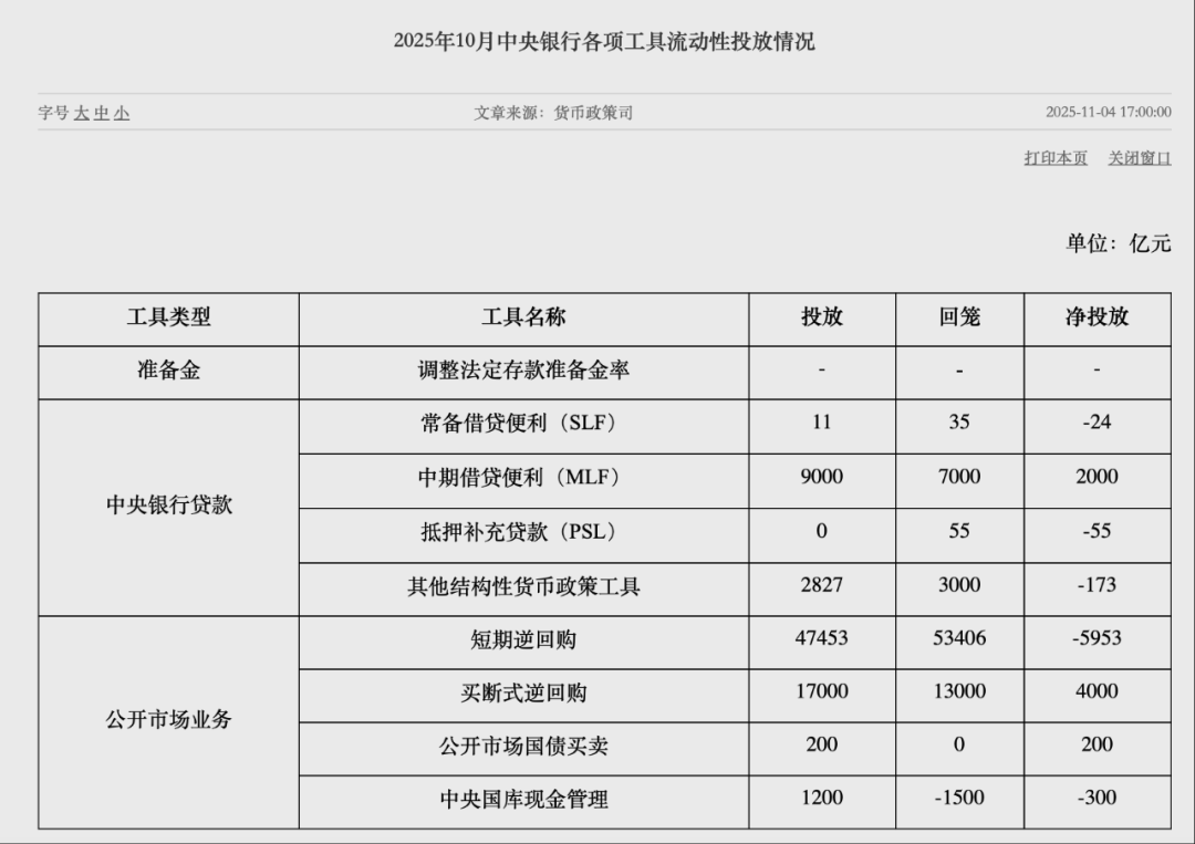 中国人民银行11月4日发布2025年10月中央银行各项工具流动性投放情况。其中,公开市场国债买卖净投放200亿元。 这意味着自今年1月起暂停的国债买卖操作已恢复。