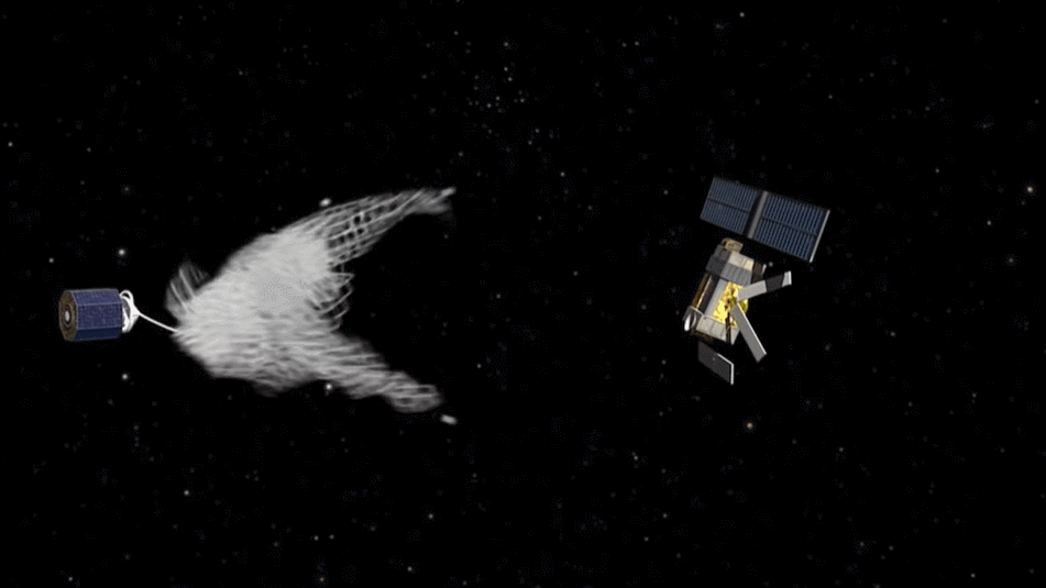 用网捕获太空垃圾的设想图。图源:欧洲空间局