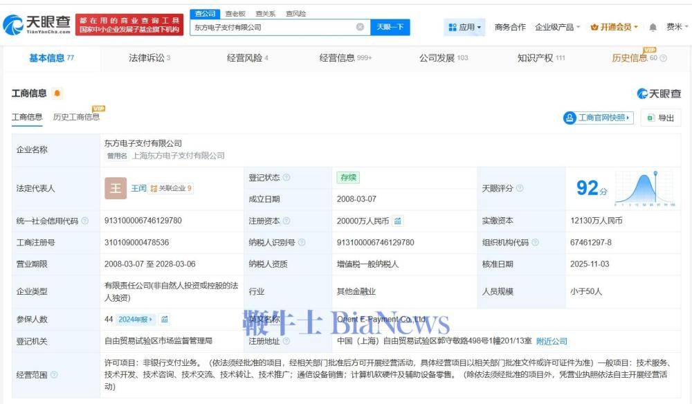 天眼查工商信息显示,近日,东方电子支付有限公司发生工商变更,原股东上海市信息投资股份有限公司、上海电子数据交换网络服务有限公司等退出,新增小红书旗下宁智信息科技(上海)有限公司为全资股东。