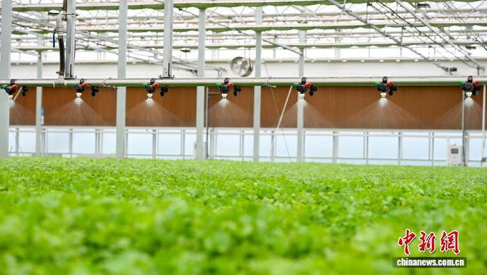 在宁夏普天瑞农农业有限公司数字种苗工厂,喷灌机自动为种苗浇水。中新网发 王强 摄