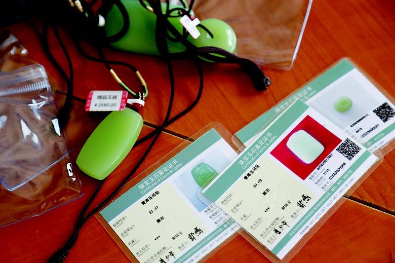 3月,市民王女士在某电商平台观看玉华轩珠宝首饰店的直播时,花费624元购买了3件宣称为“青海玉”的吊坠。“直播间说这3件吊坠都附带鉴定证书,还支持七天无理由退货。”王女士称,她喜欢玉石饰品,经常通过直播间购买。
