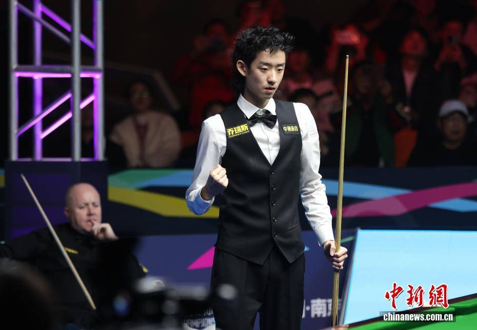 11月9日晚,在南京举行的2025世界斯诺克巡回赛国际锦标赛决赛中,中国小将吴宜泽击败老将约翰·希金斯,夺得冠军。图为吴宜泽在比赛中。中新社记者 泱波 摄