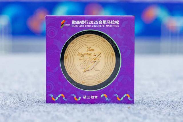 专为马拉松“破三”选手设计的“破三勋章”,同样匠心独运。金色的勋章整体呈唱片造型,与完赛奖牌巧妙呼应。环绕唱片外圈的跑道纹路清晰立体,触摸之间,仿佛能重温赛道的温度与激情。正中央,“破3”字样昂扬凸起,“合”你一起破3的誓言铿锵有力,为这份极致的热爱献上最高加冕。