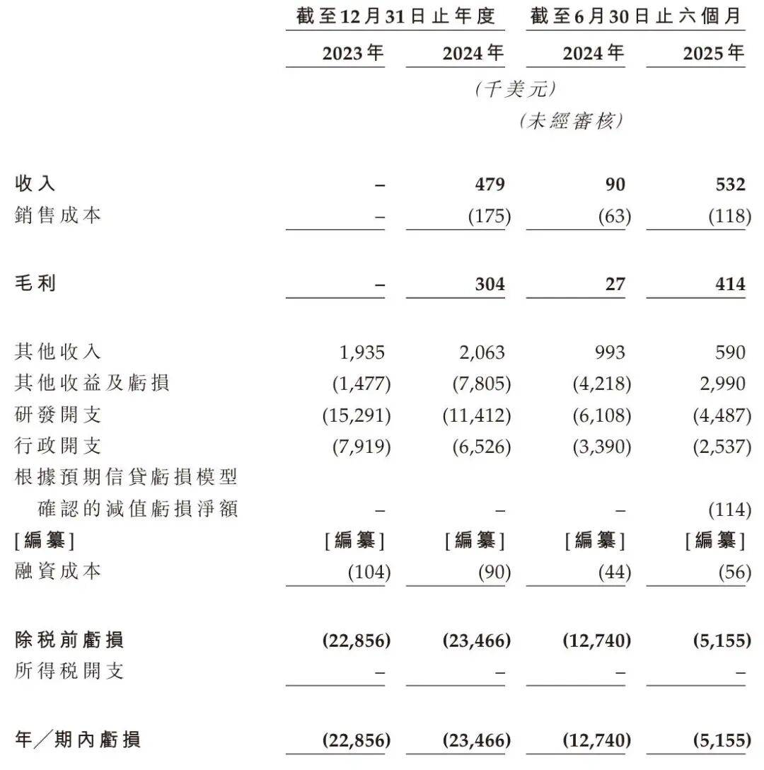 安序源在2023年无营收,在2024年的营收为47.9万美元。安序源在2023年、2024年年内亏损分别为2286万美元、2347万美元;经调整净亏损分别为1968万美元、1466万美元。