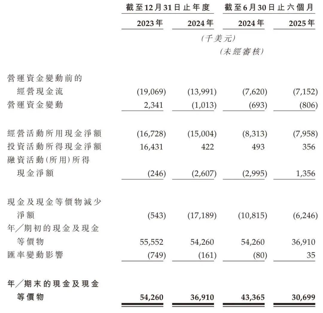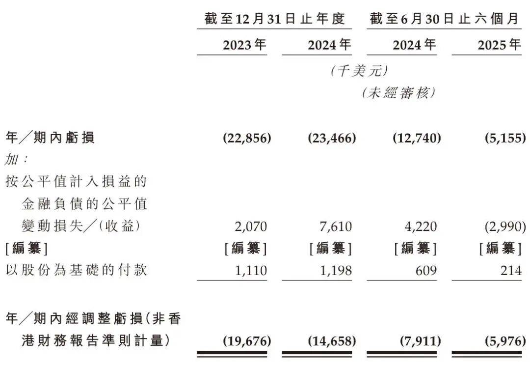 安序源在2023年、2024年经调整净亏损分别为1968万美元、1466万美元;2025年上半年经调整净亏损为598万美元。
