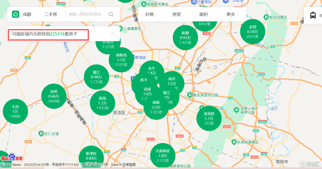 比如四川的成都,就这一个城市,中介平台上二手房对外展示的挂盘量就有225316套(2025年11月11日)。
