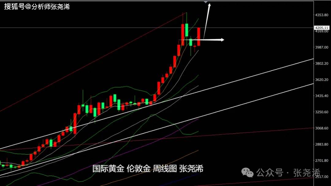 技术上,周线级别,金价自遇阻之前给出的趋势线压力位置,和9转序列反弹见顶看空信号回落走低验证后,目前止跌于10周均线支撑,并再度展开反弹走强,多头力量再度加大,布林带及附图指标信号再度向上延伸,看涨前景回归,短期有望进一步触及4345美元附近,以及再进一步的4500美元。