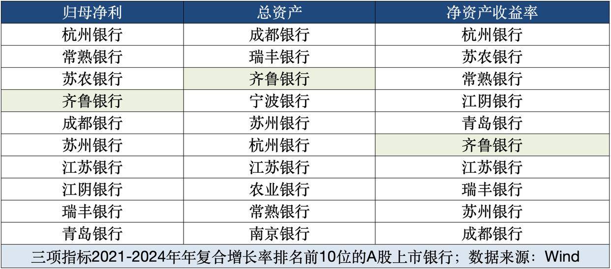 信风选取A股上市银行近三年的净利润、资产、净资产收益率年复合增长率,发现齐鲁银行在42家同业中的排名分别为第四位、第三位、第六位。