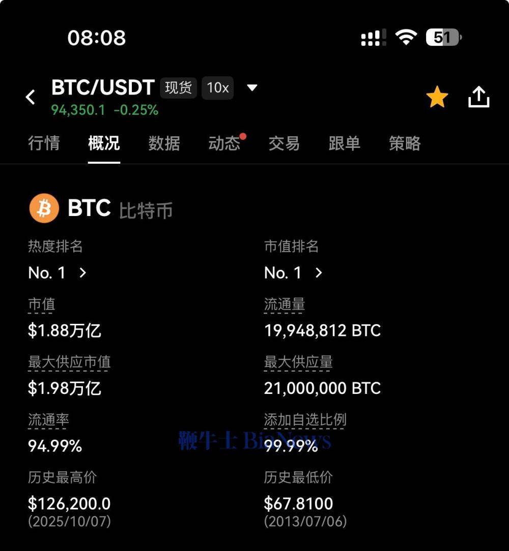 比特币最高价格曾达到12.62万美元,市值1.88万亿美元。