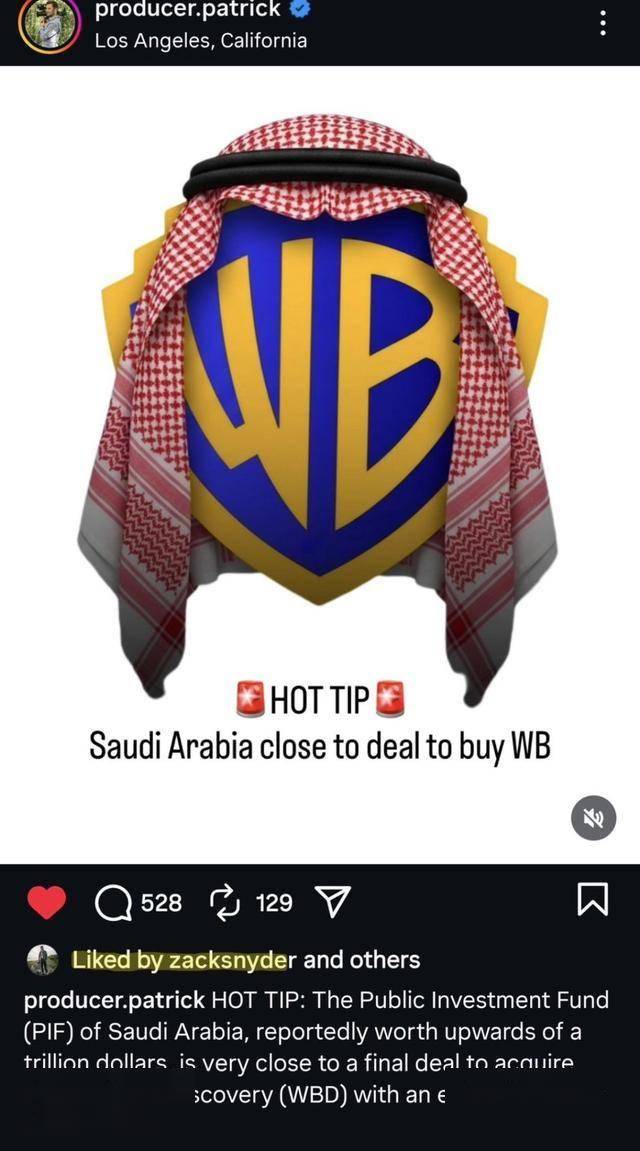 卡利吉里还指出,没有任何一家好莱坞主流媒体报道过沙特方面可能收购华纳兄弟影业的消息。相反,他们仍然关注埃里森和天空之舞传媒对华纳兄弟影业的收购,以及关于Netflix和亚马逊可能竞购的传闻。