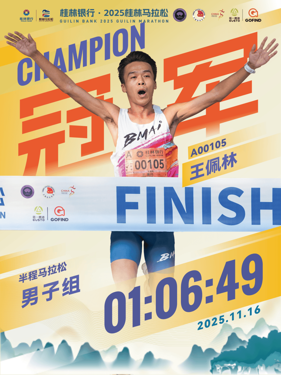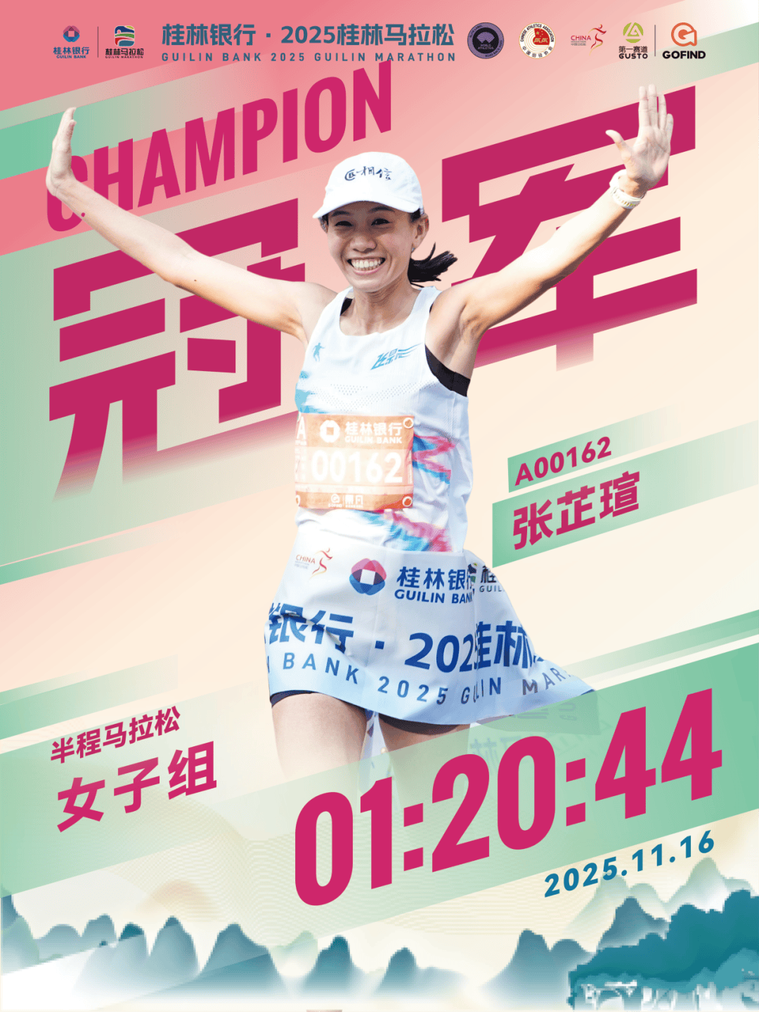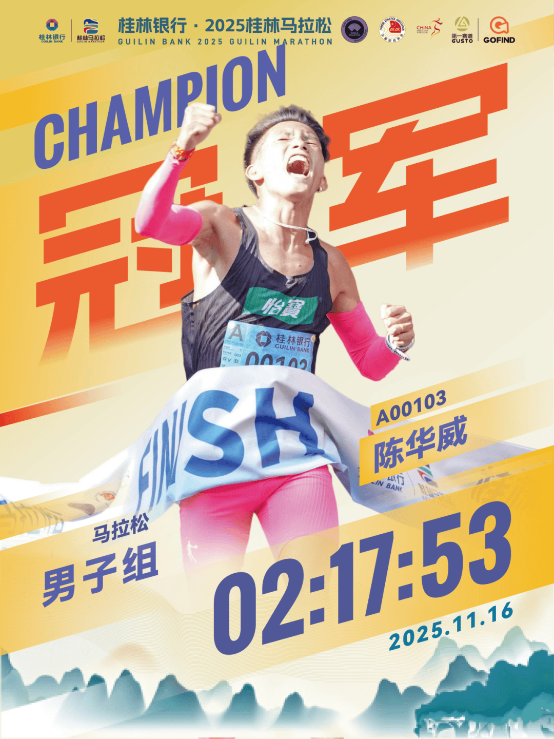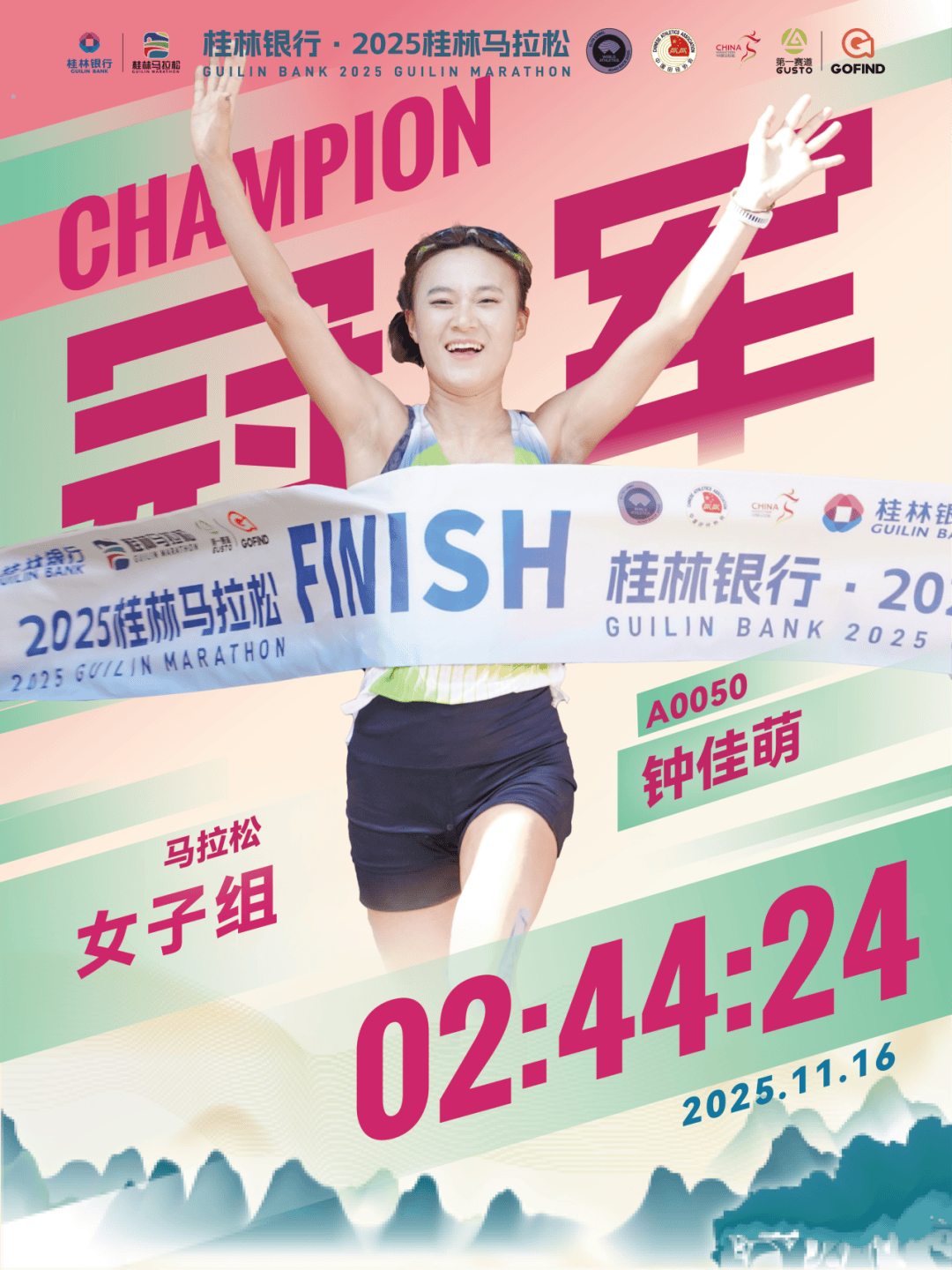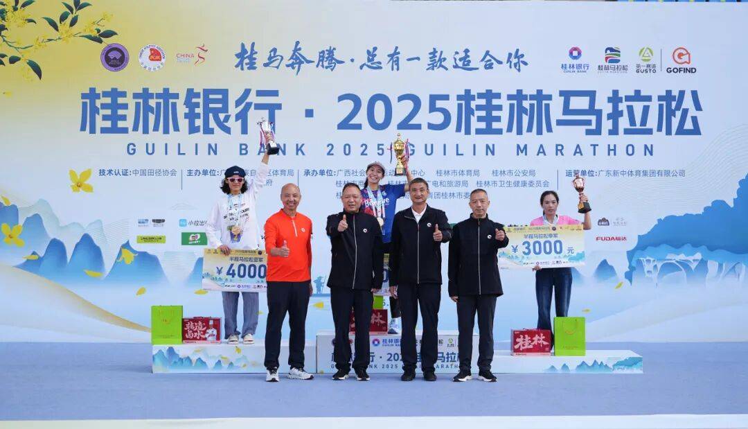 经过激烈角逐,桂林银行·2025桂林马拉松各组别男女冠、亚、季军脱颖而出: