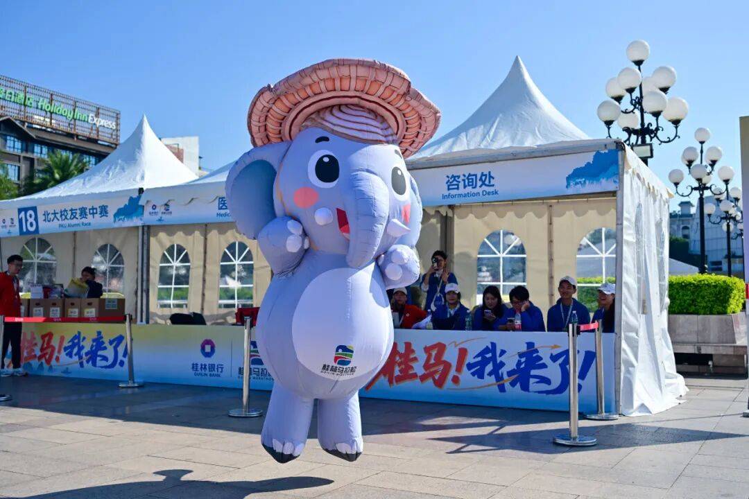 作为桂马的“活力担当”,吉祥物哒哒象自首次亮相便以其萌态可掬的形象萌动全城,成为无数跑友心中的挚爱。今年,哒哒象焕新升级,元气亮相,以更活泼灵动的姿态跃然于赛事期间。它的设计灵感根植于桂林的城市灵魂——象鼻山,巧妙地将壮丽的自然地标转化为亲切可爱的伙伴,让山水有了温度,让文化有了表情。