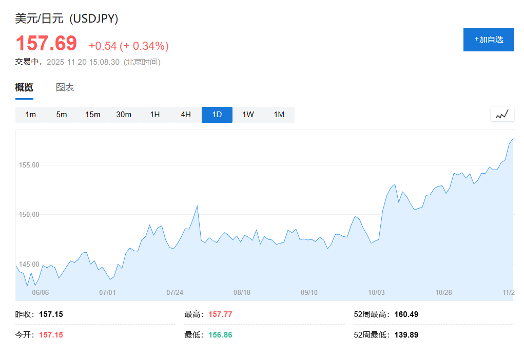 日元兑美元汇率已跌破157,创下自今年1月以来的最弱水平。日元兑欧元汇率更是触及历史新低。汇率的疲软部分归因于市场对美联储近期降息的预期减弱。
