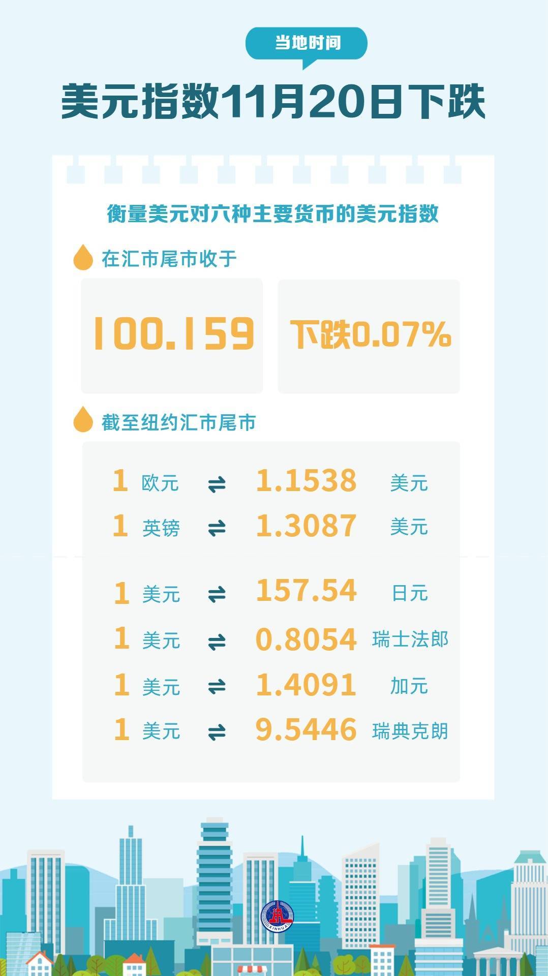 (图表)美元指数11月20日下跌