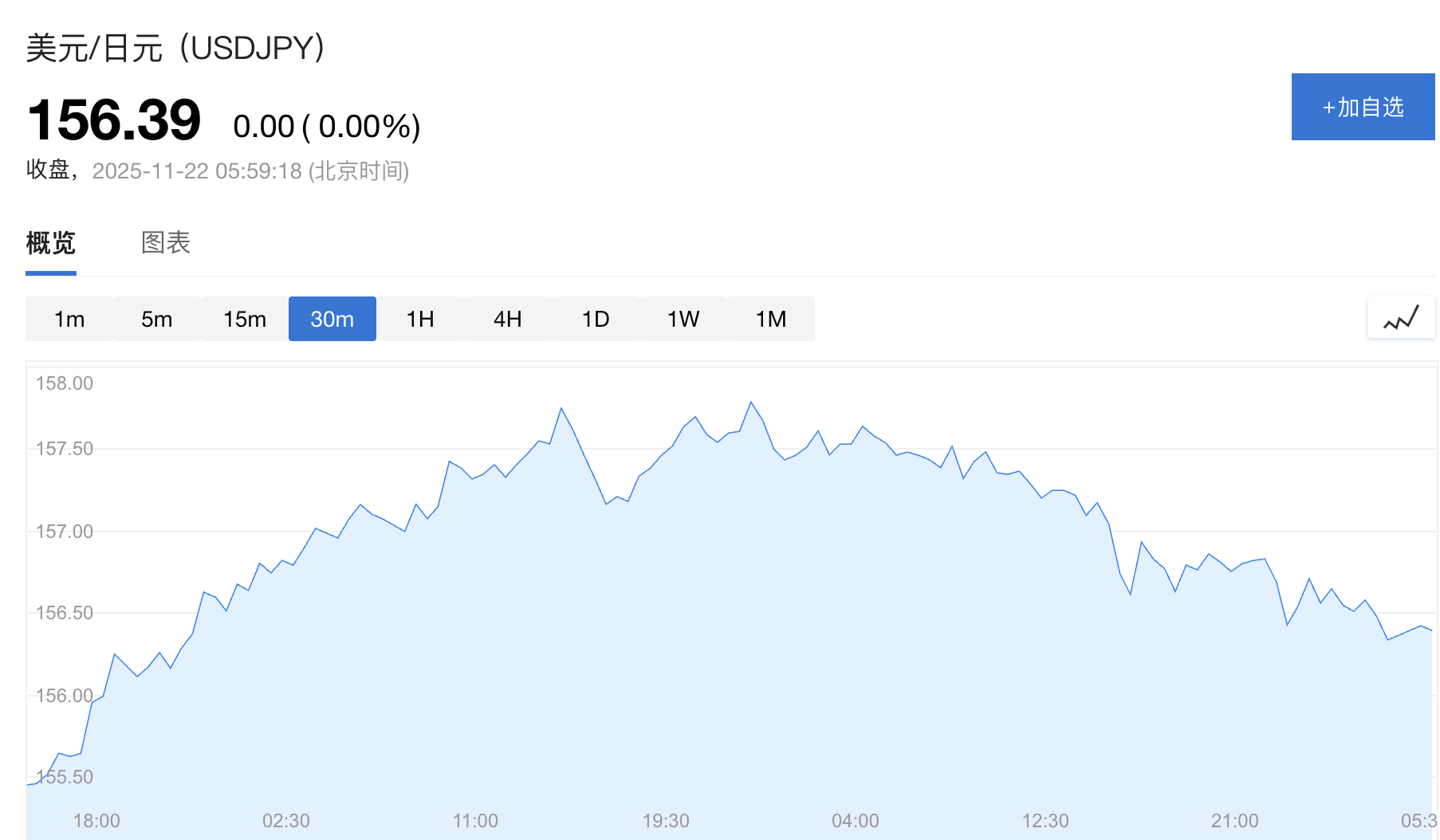 截至周日东京时段,日元汇率小幅走强至156.40左右。就在数日前,高市早苗政府刚刚公布了自新冠疫情以来规模最大的财政刺激计划。