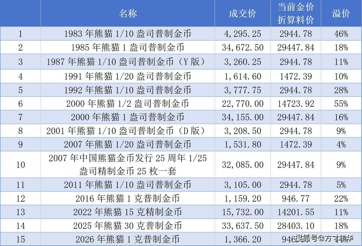同样是1克金,2026年“首日发行”的金币(第18行),溢价率高达44%。而同为1克金、图案普通的2016年版(第13-15行),溢价率是22%。这高出的部分,就是市场为“特殊概念”和“艺术预期”付出的溢价。