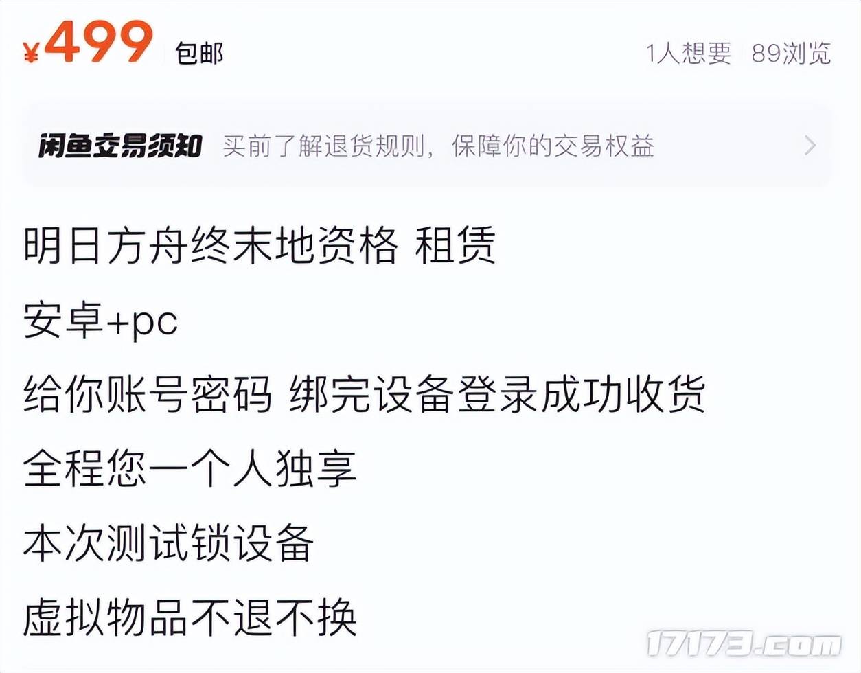 而在二手市场上,《明日方舟:终末地》更是排面拉满,在某鱼,一个测试账号就能卖到300-500不等的高价,而且这只是租号,买号价更是开出了1000的夸张价格。