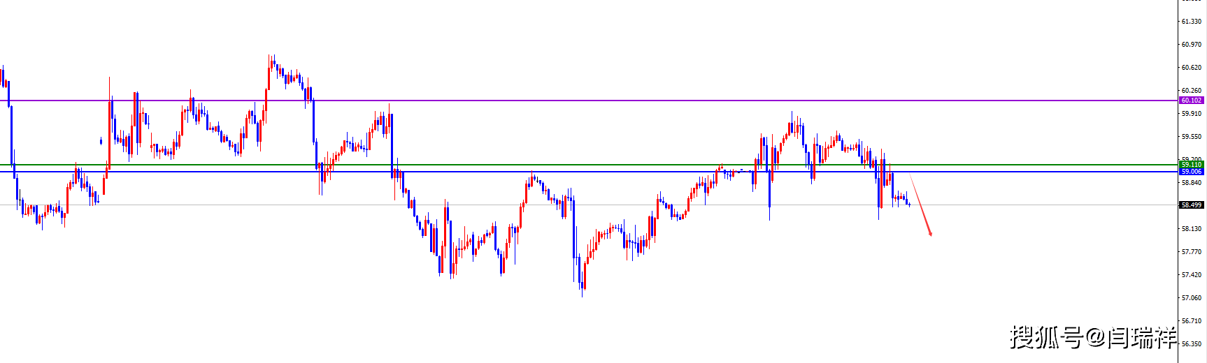 短线分水岭58.90-59区间,价格没有出现反转之前依此位置看承压