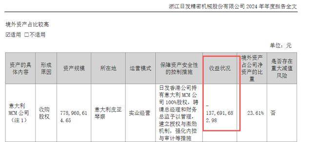 2025年6月,日发精机公告MCM公司申请破产的消息。“受国际地缘政治冲突持续、欧洲经济萎靡、市场开拓不及预期、原材料、劳动力、能源价格及供应链成本上涨等多重因素影响,意大利MCM公司成本费用持续高企,经营形势更趋严峻,亏损额不断扩大,运营资金周转困难。”日发精机称。