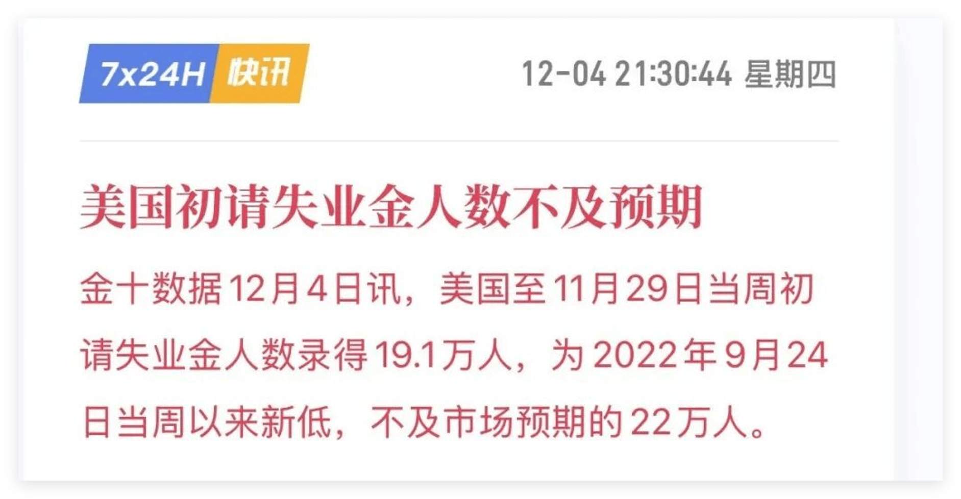 周三,美国的ADP数据创了负值,这个数据负值是很少见的。但是呢,黄金在数据之后冲高大跌。昨天,美国初请失业金数据创了2022年9月份以来的新低,但是黄金在下跌之后再次冲高拉升。