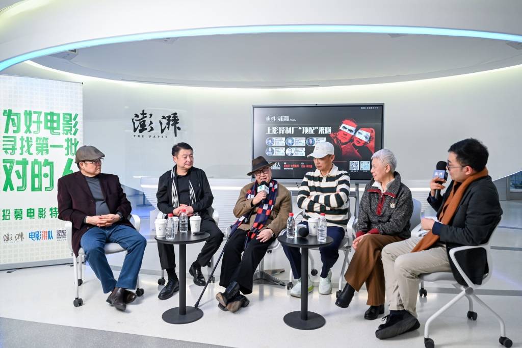而在当天下午,受“电影湃队”的邀请,这支配音“天团”来到上海报业集团进行扫楼直播。其间,他们如老友重聚闲话家常一般,畅谈如何揣摩《控方证人》中的角色,追忆译制片黄金时代陈叙一、邱岳峰等前辈的影响,也不回避讨论带有争议的“译制腔”;不经意间,还透露出种种秘辛,比如并非科班出身的王肖兵如何进入上译厂,《虎口脱险》里又有哪些路人角色背后是乔臻的声音。