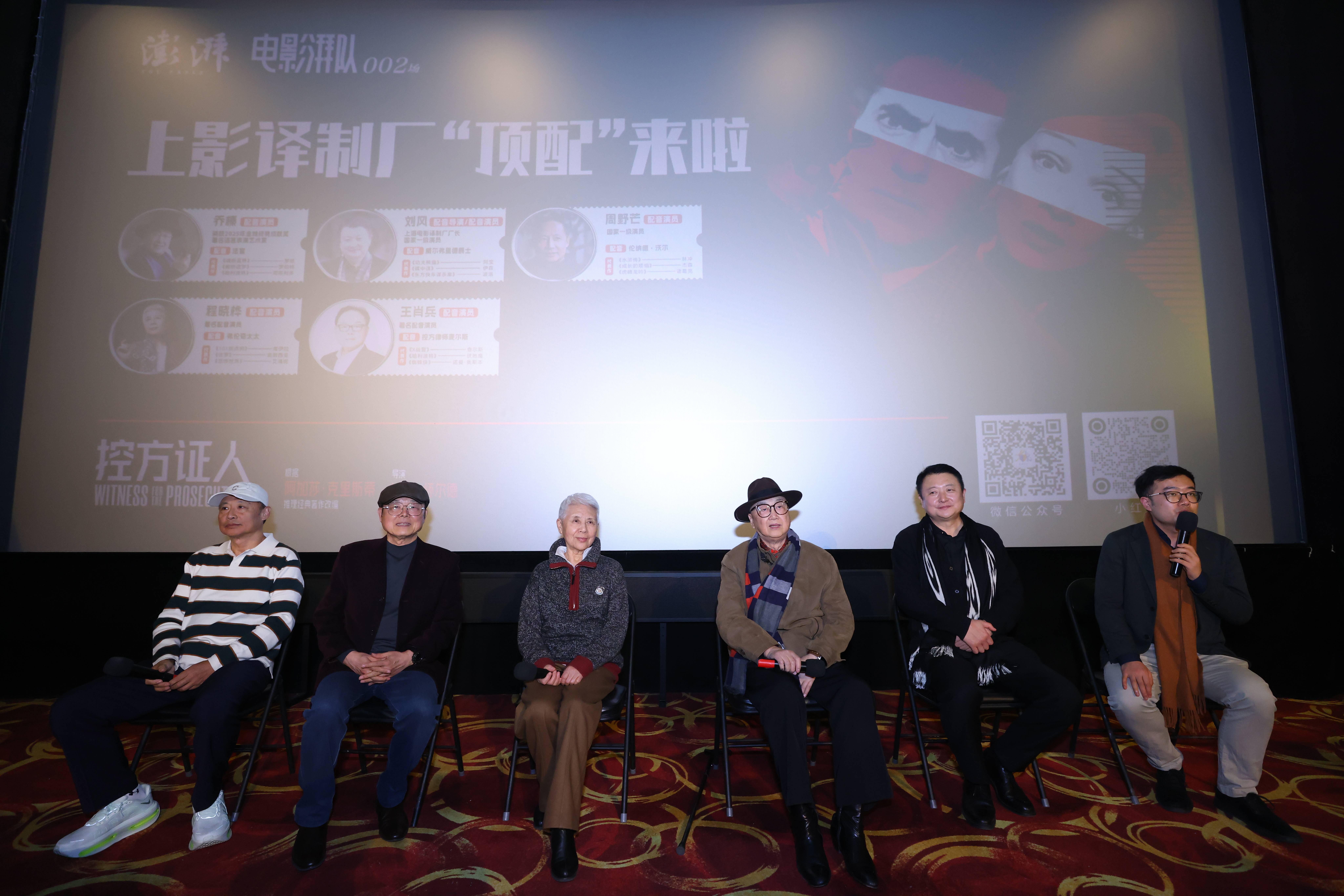 首映当晚,澎湃新闻官方观影团“电影湃队”在上海大光明电影院举办《控方证人》特别观影活动。影片放映结束后,由上译厂厂长、本片导演刘风带队,乔臻、程晓桦、周野芒、王肖兵来到影院,与观众见面并分享此次配音感悟。现场也立时变成大型粉丝见面会。在粉丝的强烈要求下,周野芒再度化身《菜肉馄饨》里的老汪,以上海话演绎了《控方证人》中他为主人公伦纳德·沃尔所配的台词。王肖兵也在现场还原了《大耳朵图图》中牛爷爷的经典台词,令观众席响起一片笑声。