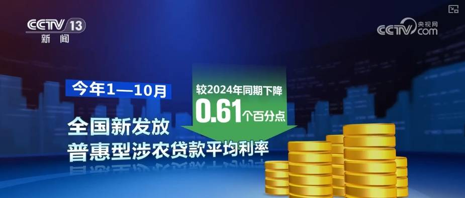与此同时,2025年1—10月,全国新发放普惠型涉农贷款平均利率较2024年同期下降0.61个百分点,继续保持下降趋势,降低了“三农”融资成本。