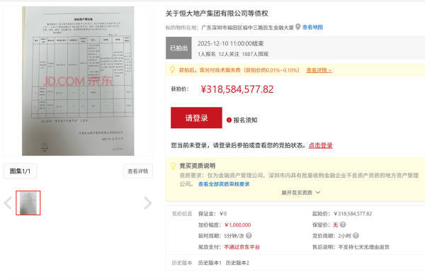 此次民生银行重庆分行的行动并非孤例。近期,民生银行深圳分行也处置了一笔涉及恒大地产的债权,总额高达23.6亿元,最终成交价为底价3.19亿元,同样低至“1.35”折左右。