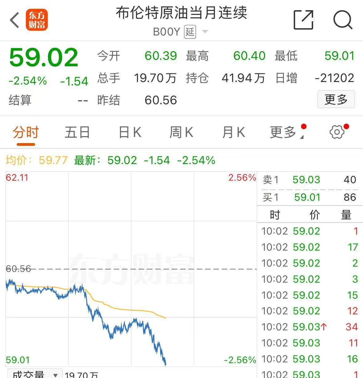 非农数据公布后,国际油价快速跳水,WTI原油、布油跌破60美元后加速下挫。