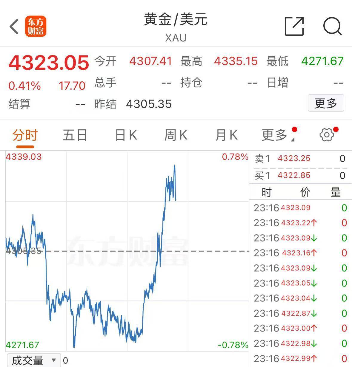 现货黄金大涨,最高至4339美元/盎司。