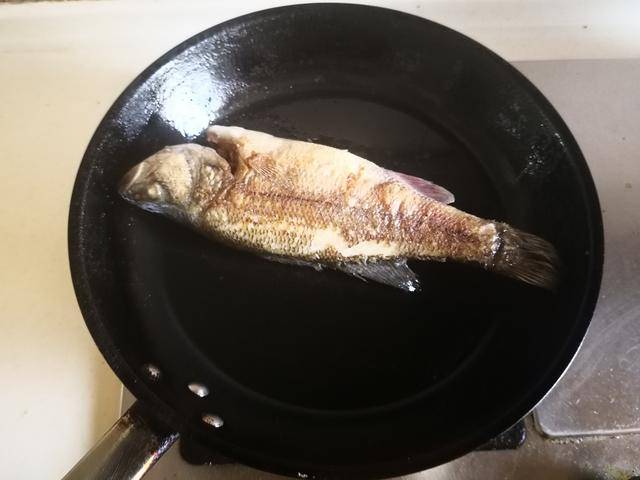 制作过程:1. 烧热锅放入适量的油,将鲈鱼表面的水分吸干后放入锅中去煎,一面煎至金黄后翻面将另一面也煎至金黄;