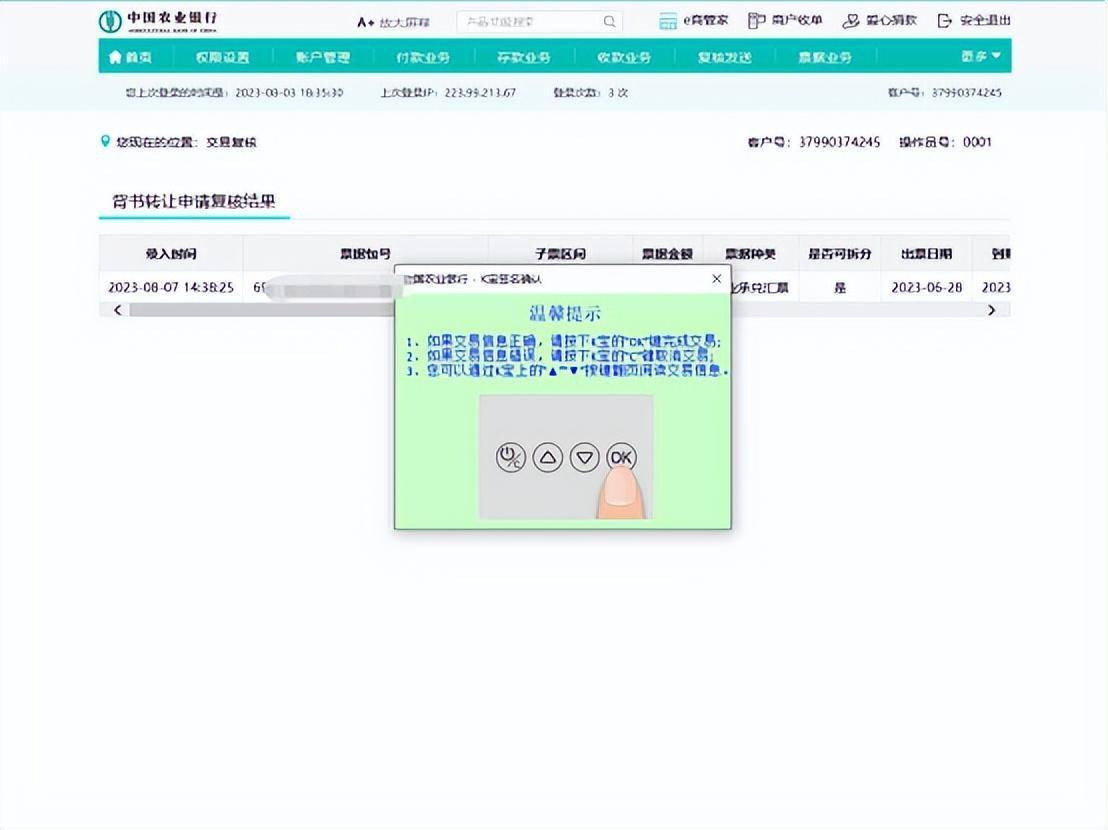 如果只有一个U盾,最后就可以通知下家,签收你背书成功的可拆分票据了。