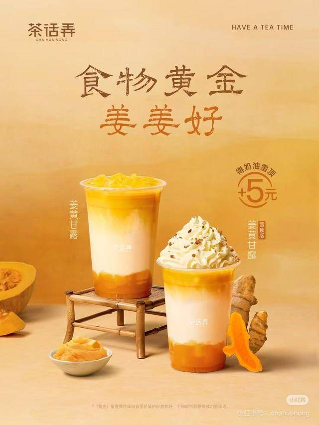 奈雪的茶在今年8月推出阳光金凤梨姜黄酸奶昔,上市首日便登顶店内销量榜;茶话弄在11月上新时推出了姜黄甘露;古茗推出的多维鲜活大橘,也添加了姜黄成分。