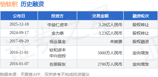 证券之星消息,根据天眼查APP于12月18日公布的信息整理,深圳怡钛积科技股份有限公司股权转让融资,交易额3.28亿人民币。