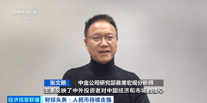 中金公司研究部首席宏观分析师 张文朗:人民币近期走强,主要反映了中外投资者对中国经济和市场的信心,比如中国科技进步提速。展望未来,中国经济韧性、科技持续进步,再加上美国继续降息,我认为人民币汇率可能还有上行空间。