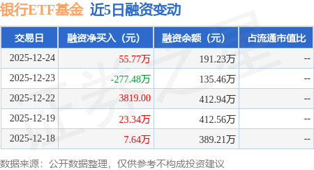 证券之星消息,12月24日,银行ETF基金(515020)融资买入115.98万元,融资偿还60.2万元,融资净买入55.77万元,融资余额191.23万元,近20个交易日中有13个交易日出现融资净买入。