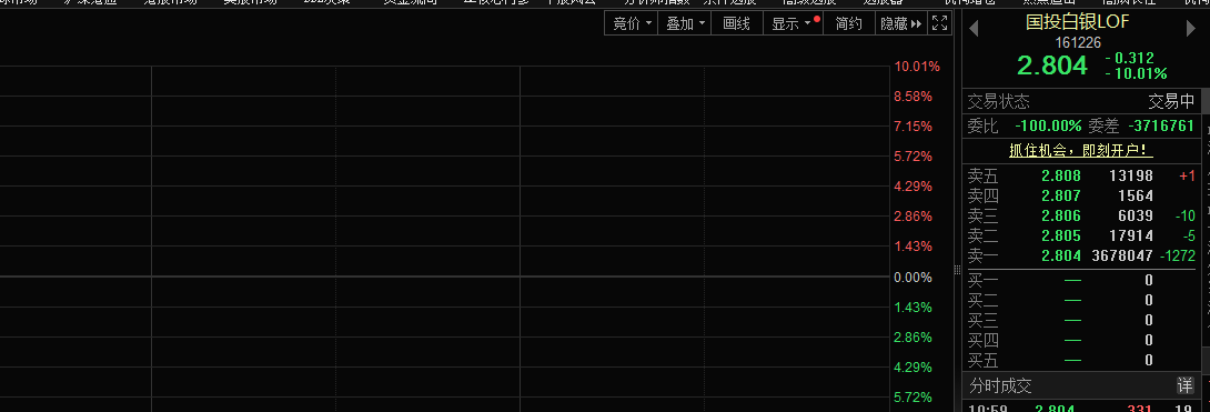 12月25日,国投白银LOF(161226)今日复牌封跌停,封单金额超8亿元,溢价率收窄至45%,另外国投瑞盈LOF(161225)、国泰商品LOF(160216)均封死跌停。