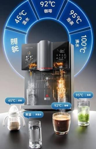 不仅如此,该产品更是创新采用了双水路的设计,实现了纯净水与矿物质水的随意切换,搭配上四档精准温控与全时智联系统,满足大家在不同场景下对不同水温与水质需求的同时,更是能实时掌控机器状态。