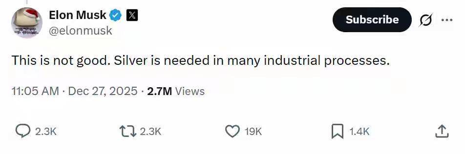短短几个字,让无数投资者懵了圈——白银大涨明明是赚钱机会,马斯克为啥要泼冷水?